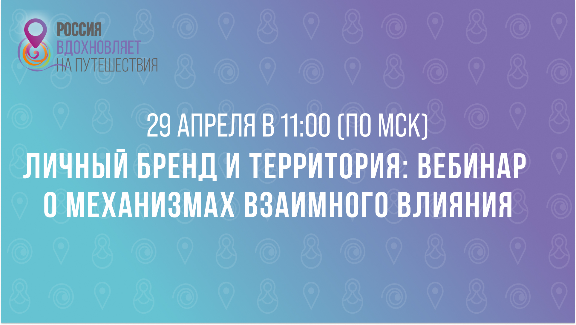 29 апреля в 11:00 (по МСК) в сообществе во «ВКонтакте» экосистемы «Россия вдохновляет на путешествия» состоится вебинар в прямом эфире на тему «Прямая корреляция между личным брендом и территорией».